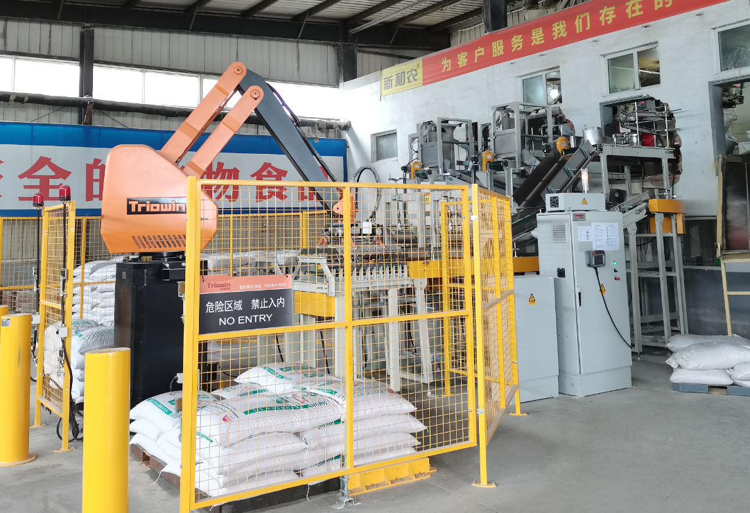 隨著國內(nèi)產(chǎn)業(yè)結(jié)構(gòu)調(diào)整,畜牧行業(yè)轉(zhuǎn)型升級、新常態(tài)發(fā)展機(jī)遇期,加上和農(nóng)牧業(yè)集團(tuán)的創(chuàng)新式發(fā)展,在生產(chǎn)車間成品接包區(qū)引入自動化設(shè)備碼垛機(jī)器人。